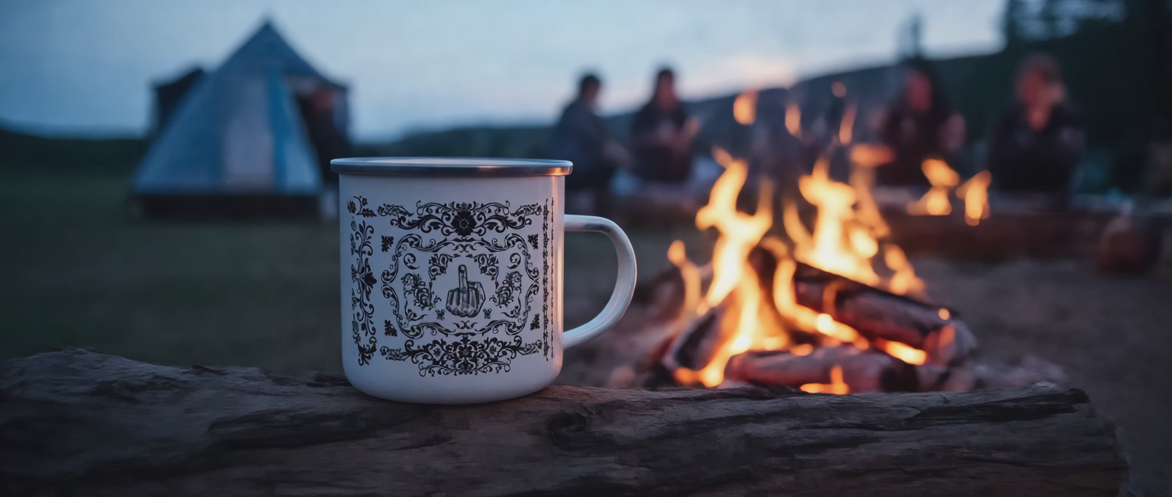 Every happy camper needs a unique camper mug. It's lightweight, durable and multifunctional. Use it for your favorite beverage or a hot meal, and attach it to your bag for easy access on a hike.
