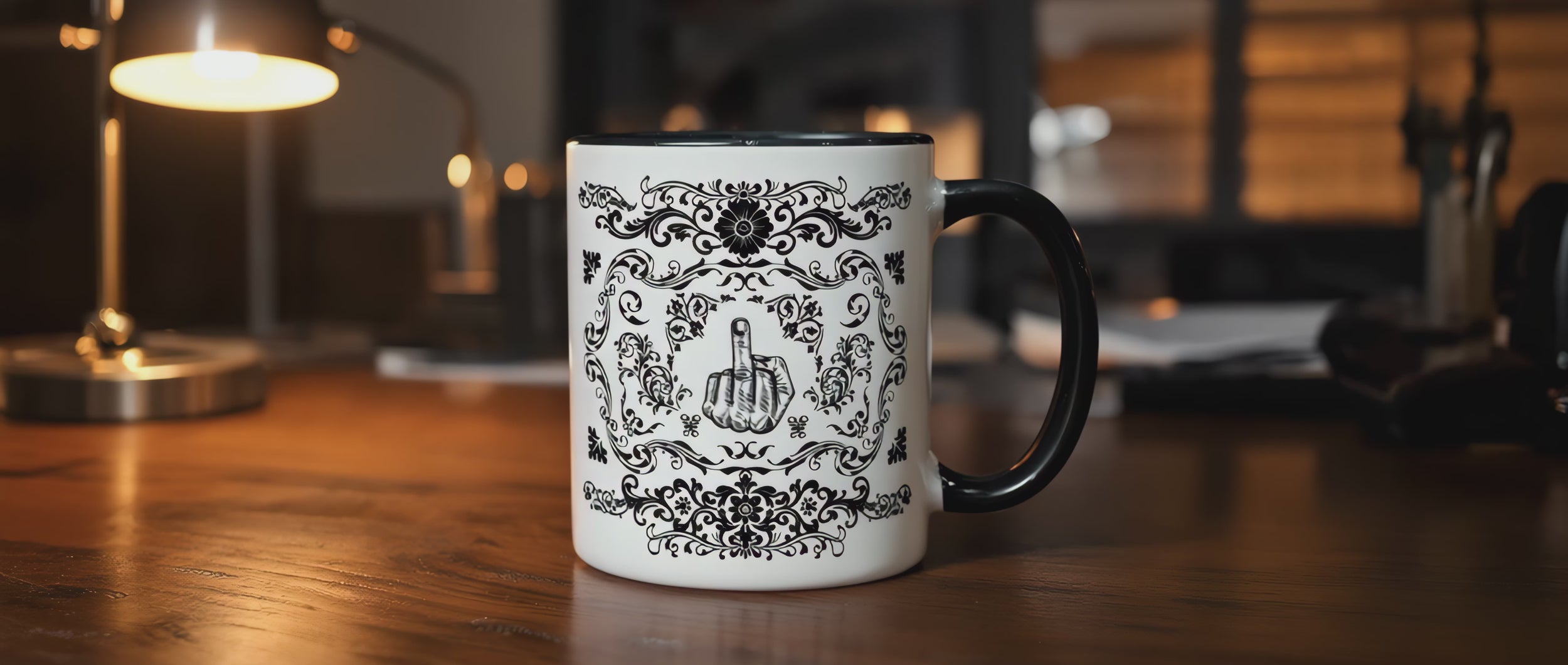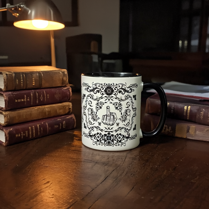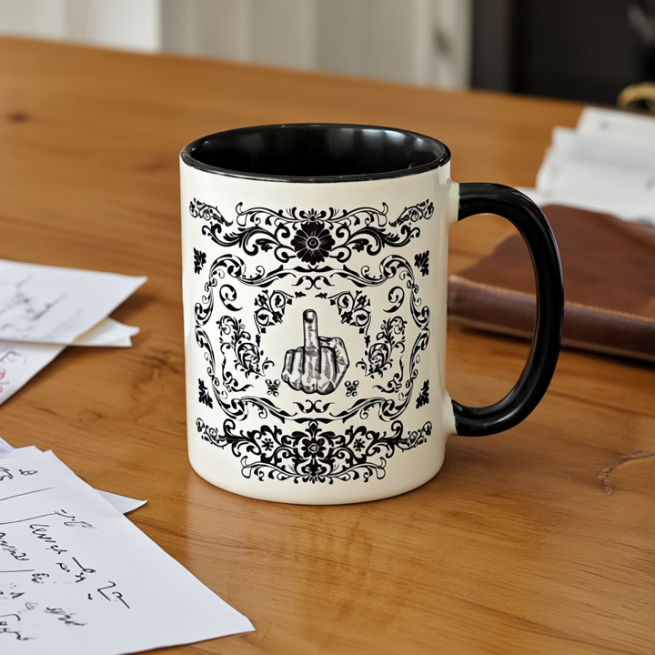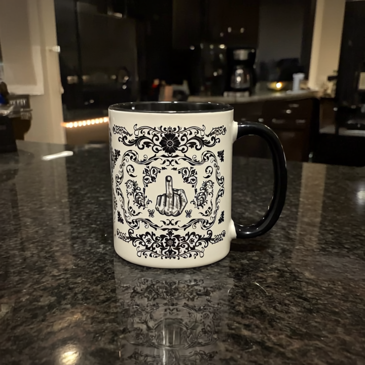 Middle Finger Ornate Mug Black Print with Black Color Inside
